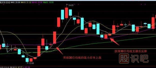 30日均線是一只股票重要的均線,在股價在30日均線下方時,該均線則成為一個阻力位,但是如果股價突破該阻力位的話股價會有一波上漲;當在股價在30日均線上方時為股價的強力支撐線,但再拿問財寶客戶關注的中航資本做例子。1月16日股價突破30日均線,但受到均線的壓力后兩天連續(xù)下跌,1月21日以漲停板站上30日均線,股價上漲近30%。2月9日,中航資本股價跌至30日均線,