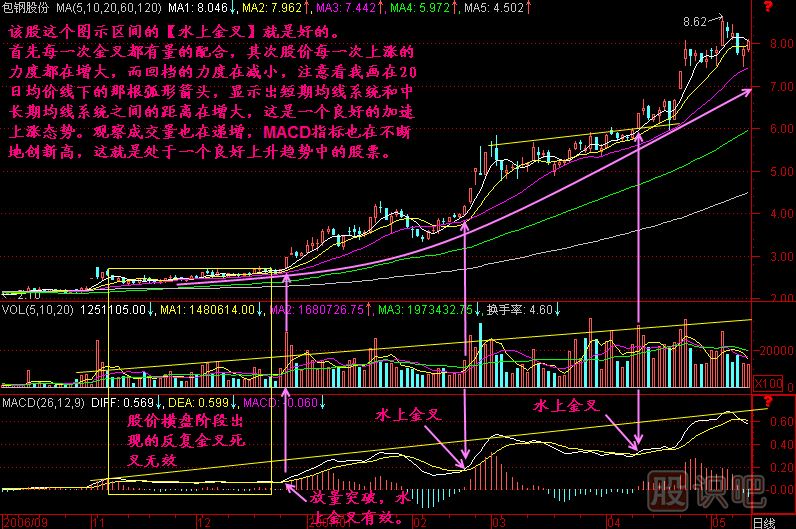 什么樣的水上金叉才是可以操作的?或者說(shuō)什么樣的水上金叉漲幅會(huì )大些?會(huì )安全些?請看下圖。