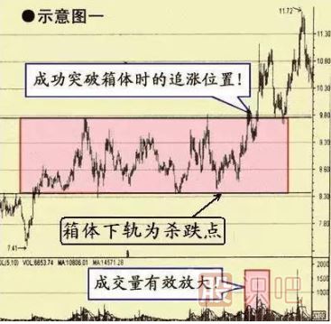 一般股價在箱體內(nèi)反復(fù)震蕩,在成交量放大配合下,股價突破箱體頂部,向上拉升,形成了很好的買入位置。
