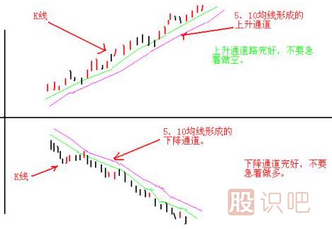 條件1、3、5分鐘圖上,5、10均線所形成的通道完好。2、K線還沒有形成較為明顯的靠線。