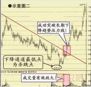 2、股價成功突破下降趨勢壓力線時的買點