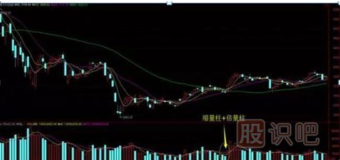 “價(jià)跌量縮的縮量柱”是市場(chǎng)拐點(diǎn)即將出現的重要標志,特別是階段性低量柱出現的次日,只要出現超過(guò)低量柱的紅柱或者倍量柱,就是介入的好機會(huì ),如下圖: