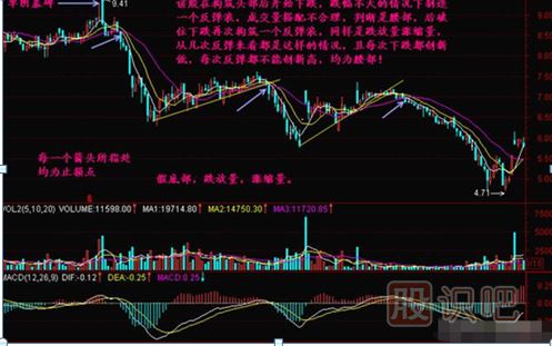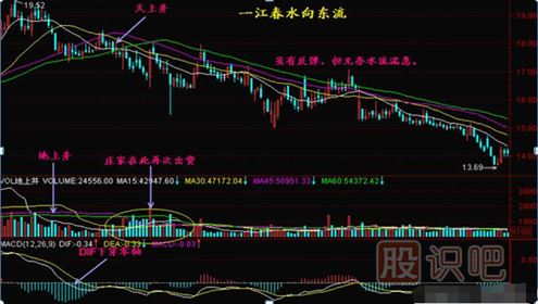 一江春水向東流的走勢說(shuō)明均線(xiàn)、K線(xiàn)之間呈均速下跌,等距下跌,這樣的下跌行情不容易獲得搶反彈資金的青睞,所以導致股價(jià)一路下滑,直到加速下跌時(shí)才可能有人來(lái)?yè)尫磸?,而中線(xiàn)介入的機會(huì )要等待股價(jià)不創(chuàng )新低了,有資金進(jìn)入導致創(chuàng )新高了,才可能有機會(huì )。