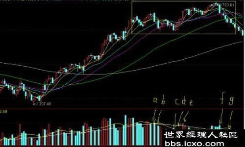 (6)這種以期貨手法反復逼空上揚的個(gè)股,漲時(shí)一般單邊上揚,而跌去時(shí)的形態(tài)較為復雜,而且時(shí)