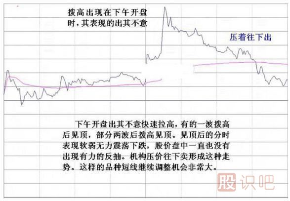 通常的個股走勢,都是跟隨大盤而動,但有的個股,走勢完全不受大盤任何左右,開盤即直奔高點而去,當?shù)竭_某一可觀高度后,也不管大盤走勢,直接滑落,這種分時走勢,不是莊家拉高出貨,就是莊家大幅振蕩洗籌。