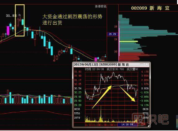 莊家利用股價全天劇烈震蕩,吸引散戶進場。當股價強勢上揚時,散戶以為股價還將拉升,追漲進場;當股價下降非常多時,散戶以為底部到來,爭相“抄底”,此類走勢,大概率是大資金出逃。