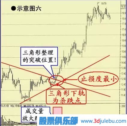 6、股價成功突破三角形整理時的買點