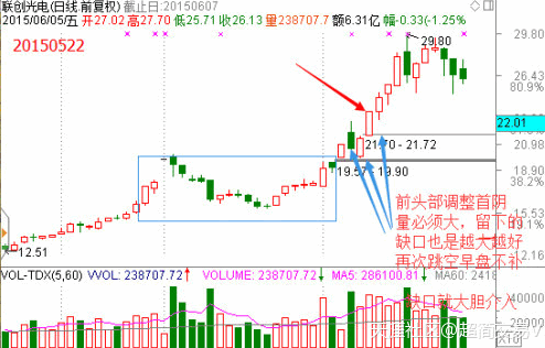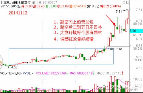 1、必須盤(pán)整突破或者上升加速的跳空缺口,缺口越大越好。