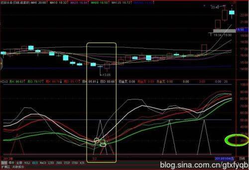◆圖中第二個(gè)圓圈處為根據隨機應變原理,判斷為短線(xiàn)見(jiàn)頂,則拋出股票,結果是后面到13.7元高點(diǎn)的利潤的踏空;