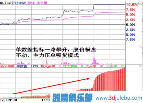 2、若股價(jià)走勢消極,但單數差指標卻逆勢飄紅,通常紅柱一路向上,我們理解為機構逆勢吸貨,中小投資者看到這種現象賺錢(qián)的機會(huì )來(lái)了