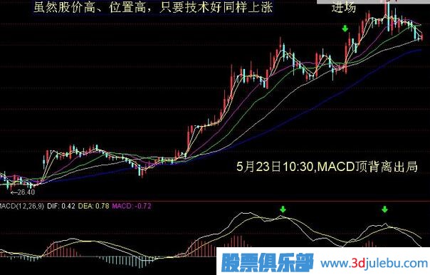 上一次博文最后還談到我最近除了在宏達(dá)新材加倉(cāng)兩次外,還買(mǎi)了一只新股票,至于新股票是什么我沒(méi)有說(shuō),我怕一些網(wǎng)友照貓畫(huà)虎出現(xiàn)不必要的損失,那只新股就是中科三環(huán),我用的就是第一次放量法介入的,這只股票由于我指導(dǎo)一位朋友操作,比較熟悉。 5月18日上午10點(diǎn)40分鐘左右,在營(yíng)業(yè)部里我的一位股友X女士向我咨詢她的一只股票要加倉(cāng)問(wèn)題,我起身的她的電腦前看了圖形一下說(shuō),晚了,應(yīng)該在第一次放量就介入,現(xiàn)在過(guò)了這么多天已經(jīng)到了末尾階段,風(fēng)險(xiǎn)性較大,而后我隨便打出了中科三環(huán)的圖形,你看它正在要三金叉放量,現(xiàn)在可以進(jìn)場(chǎng),她看了一下說(shuō),位置這么高,股價(jià)40多元我可不敢!本來(lái)這只股票現(xiàn)在正在拉升高潮期,觀察一下午后進(jìn)場(chǎng)也不遲,我為了說(shuō)明這種方法可行,鼓勵(lì)她介入的勇氣說(shuō),你不敢進(jìn)場(chǎng)我進(jìn)你看,下單在40.02元成交,然后我回到原位置坐下。過(guò)了一會(huì)她告訴我說(shuō)你賺了快到一元錢(qián)了。實(shí)際到了收盤(pán)是39.26元,不賺反套,介入早了。該股在5月23日10:30分鐘,60分鐘的MACD走頂背離時(shí)出局,每股賺4元多錢(qián),由于當(dāng)時(shí)我買(mǎi)給X女士看的,沒(méi)有買(mǎi)多少。