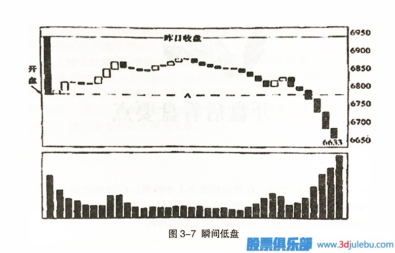 瞬間低盤(pán)表示低檔接盤(pán)積極,當(dāng)天上漲收陽(yáng)的可能性極大。但如果成交量不能放大反而萎縮,走勢(shì)出現(xiàn)后繼乏力現(xiàn)象,一旦股價(jià)回跌,跌破瞬間低盤(pán)的開(kāi)盤(pán)價(jià)時(shí),投資者應(yīng)及時(shí)賣(mài)出。