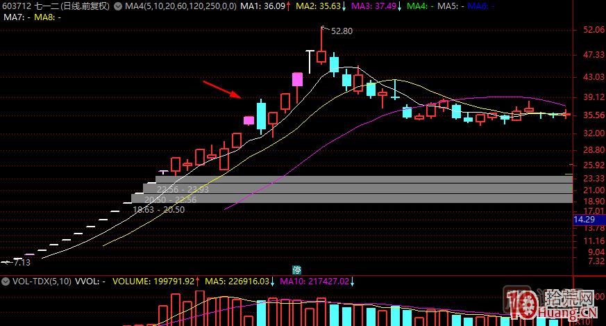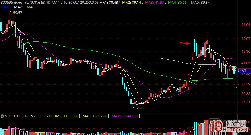 這個(gè)應該也不難理解,就是加速次日,或者當日首次加速,在加速的情況下漲停換手,然后爆量回封爛板。注意,這個(gè)一般發(fā)生在4板最為常見(jiàn),因為4板是一個(gè)獲利盤(pán)堆積需要集中釋放的位置。