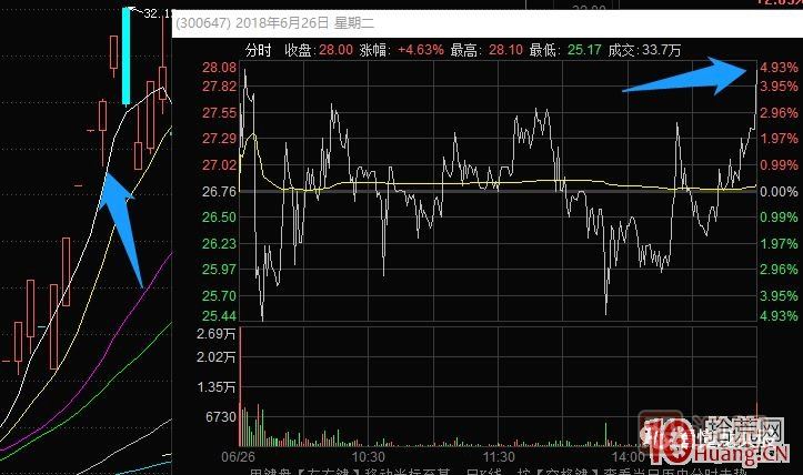 4、前一天強勢的漲停板,次日開盤分時出現(xiàn)“力不從心”。