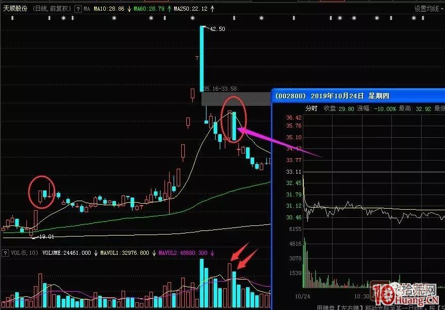 形態(tài)比較明顯,長(zhǎng)陰跌停后直接縮量,小幅震蕩小陽(yáng)線,出現(xiàn)買(mǎi)點(diǎn)。龍回頭周期是2天,一個(gè)漲停+一個(gè)沖板回落,利潤(rùn)約20個(gè)點(diǎn)。