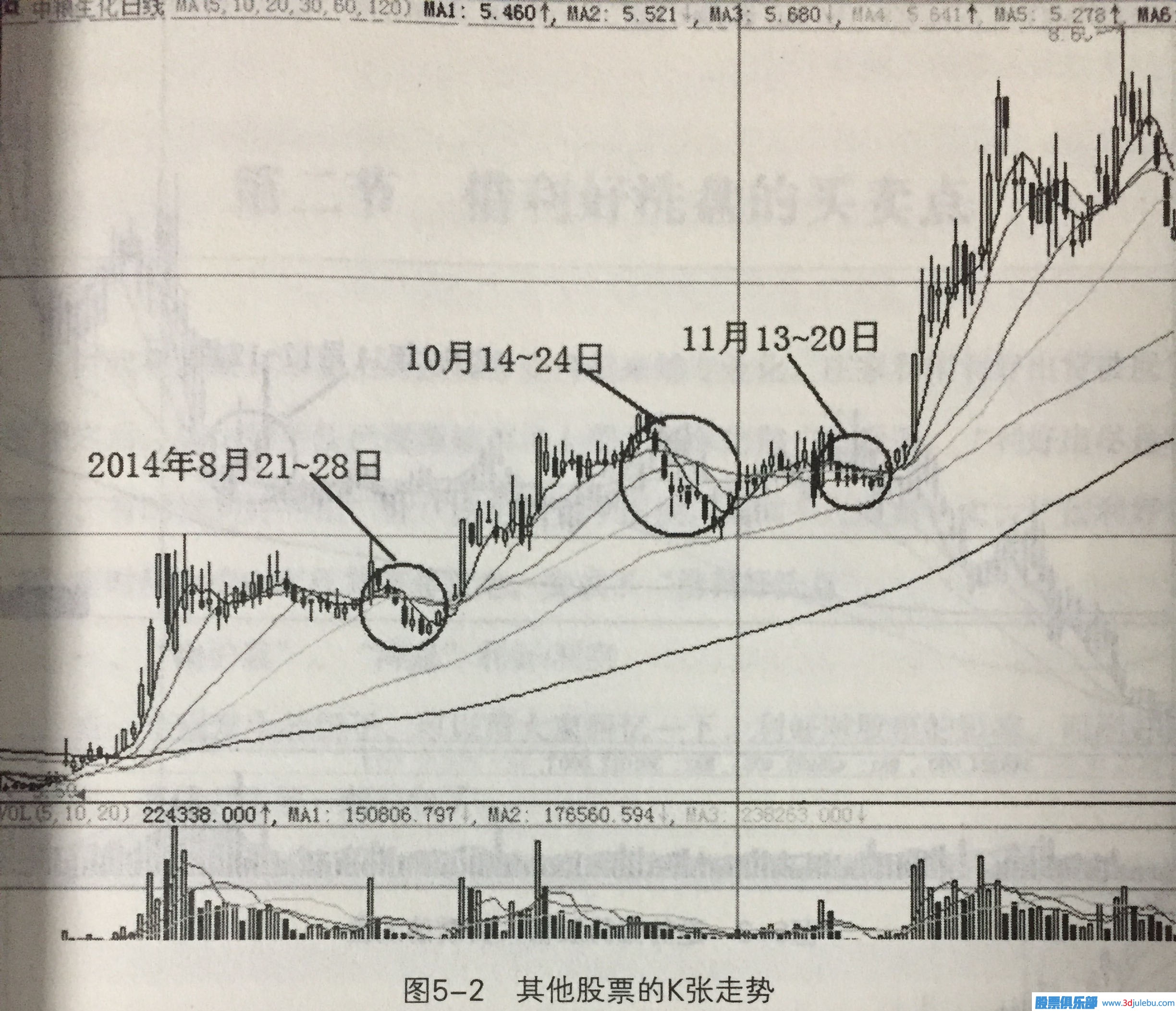 在此期間,其他股票的K線(xiàn)走勢如圖5- 2所示