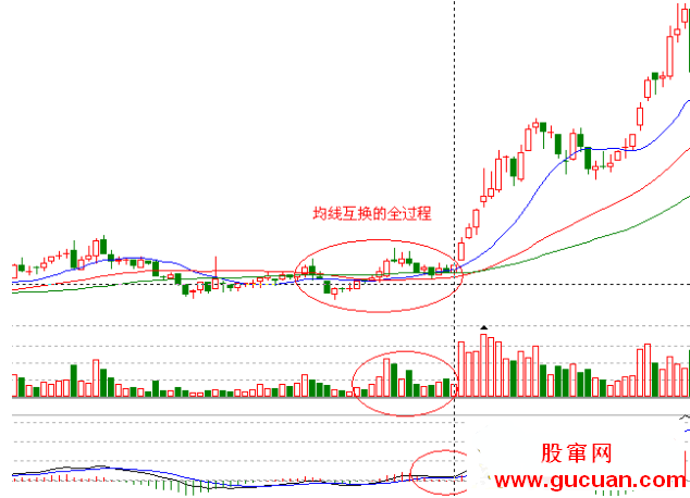 均線互換,在震蕩中互換均線,不知不覺中完成拉升的前奏。