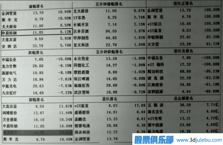 價(jià)當天放量上穿多條均線(xiàn),且當天K線(xiàn)姿態(tài)并不算高,如選股技巧解析利用漲幅排行尋找強勢股果該股屬于強勢明顯的個(gè)股同時(shí)又滿(mǎn)足這個(gè)條件,那短線(xiàn)股價(jià)就一定具有進(jìn)一步的上漲空間,當天股價(jià)沒(méi)有漲停的話(huà)可在當天收盤(pán)前快速跟進(jìn),短線(xiàn)收益較為明確。如圖1所示是2011年9月6日收盤(pán)時(shí)的深市綜合排名情況,圖中漲幅排名欄顯示的六只個(gè)股經(jīng)過(guò)分別查看K線(xiàn)圖后發(fā)現中原特鋼(002423) 當天的K線(xiàn)放量上穿了多條均線(xiàn)(如圖所示),強勢特征-覽無(wú)余, 后期進(jìn)一一步 上漲非常有望,操作上可在當天尾盤(pán)伺機跟進(jìn)。