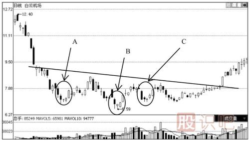 (3)如果中間那根K線為十字星,也就是當(dāng)天開盤價與收盤價相等,見底信號十分明顯。