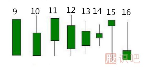 13、小陰線(xiàn),也叫小棋子,實(shí)體較小,同時(shí)帶有不太長(cháng)的上下影線(xiàn),顯示走勢撲朔迷離,行情難料。