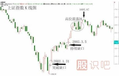 而上證指數(shù)2002年1月31日的跳空缺口也是一個(gè)突破缺口。也是大盤從1339點(diǎn)上漲到1693點(diǎn)這一輪中級(jí)反彈行情啟動(dòng)的重要標(biāo)志。