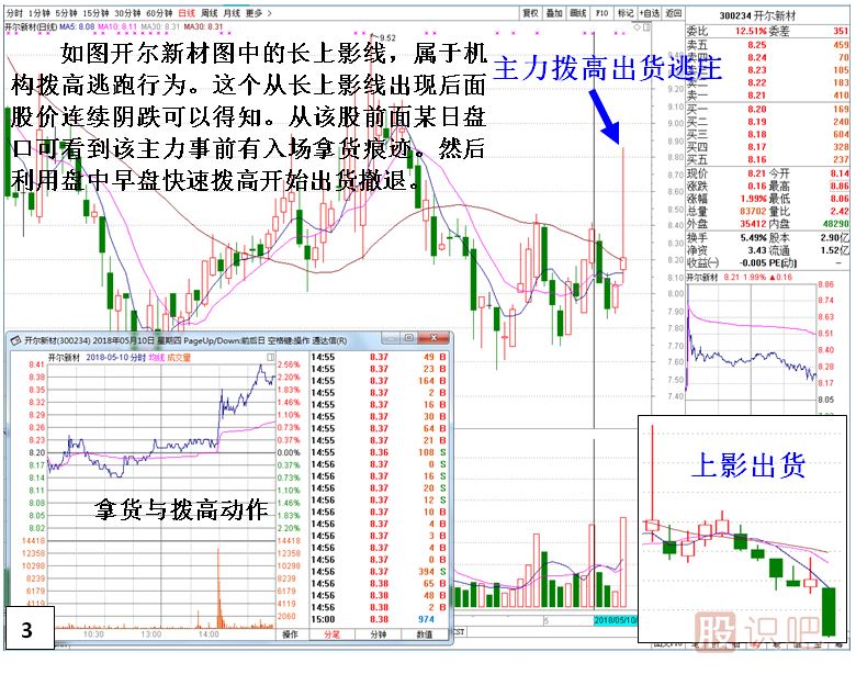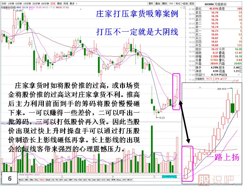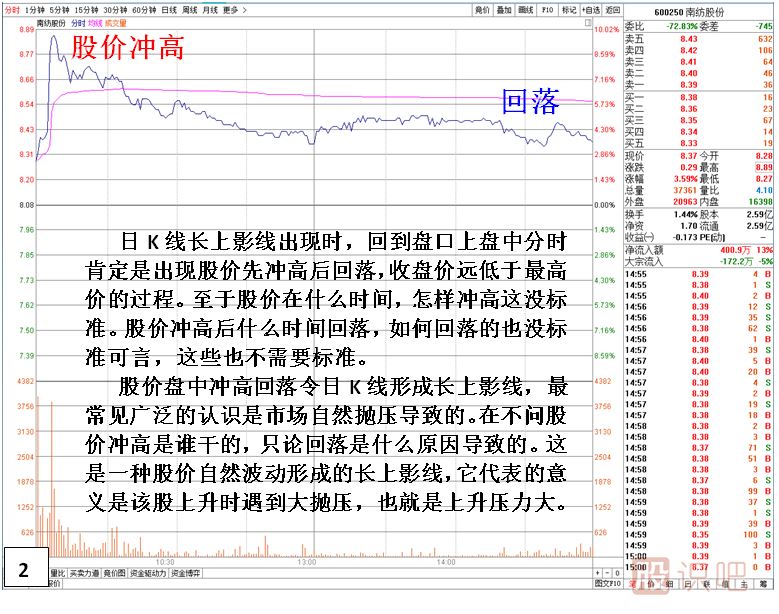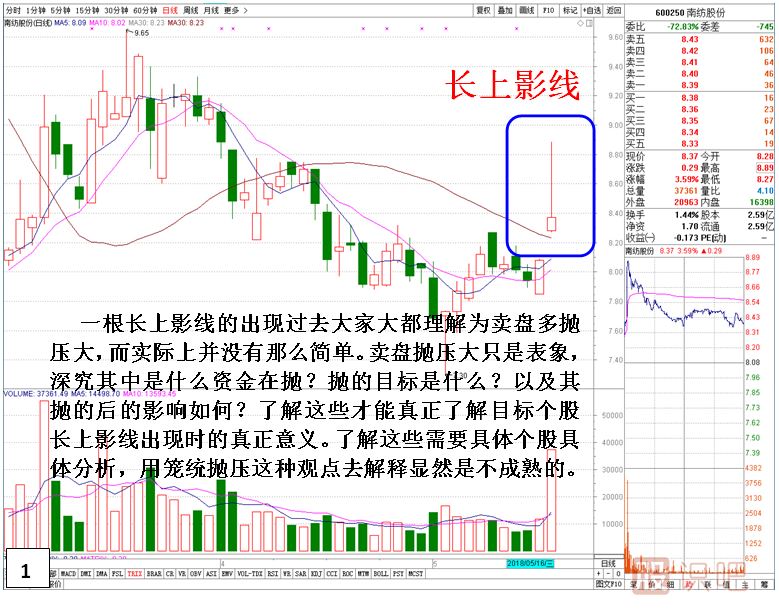 傳統(tǒng)技術(shù)分析中個(gè)股或指數(shù)K線出現(xiàn)長(zhǎng)上影線,市場(chǎng)對(duì)其讀解是賣(mài)方賣(mài)盤(pán)拋壓大導(dǎo)致股價(jià)沖高回落。讀解的最終結(jié)果就是上升拋壓大。而在實(shí)踐中筆者發(fā)現(xiàn)長(zhǎng)上影線所代表的真正意義并沒(méi)有那么簡(jiǎn)單。根據(jù)個(gè)股的形態(tài),位置,出現(xiàn)時(shí)段,交易主體的不同其意義有重大區(qū)別。下面就將本人多年實(shí)踐總結(jié)出來(lái)的經(jīng)驗(yàn)?zāi)贸鰜?lái)與各位分享學(xué)習(xí)。
