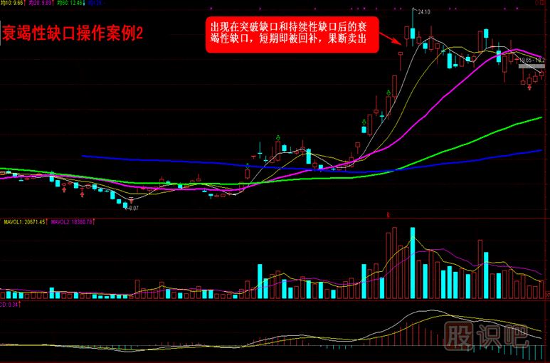 對于衰竭性缺口的操作來講,在上漲末期出現(xiàn)的衰竭性缺口要及時賣出,同時,理論上講,在下跌末期出現(xiàn)的衰竭性缺口要及時買入,但實盤操作過程中,建議趨勢完全轉好后順勢而為,而不建議在趨勢并未見明顯好轉時進行抄底操作。