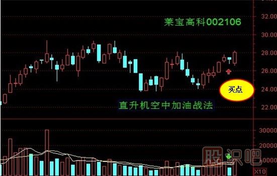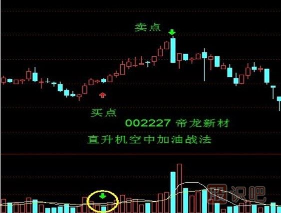 直升機(jī)空中加油戰(zhàn)法:股價(jià)在經(jīng)過連續(xù)的上漲途中收出一個(gè)縮量的小陰線。