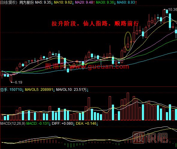 3.仙人指路出現(xiàn)在拉升階段,是主力洗盤的動(dòng)作。