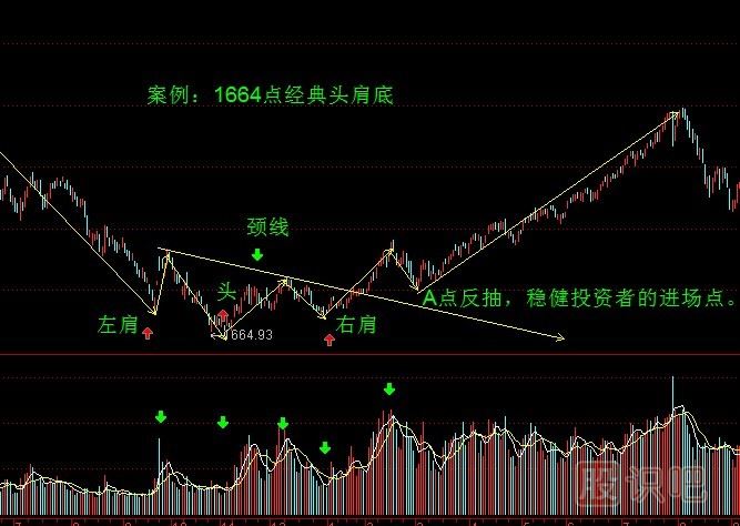 1)找到頸線是頭肩底的重要的一個(gè)環(huán)節(jié),因?yàn)樗械男螒B(tài)都是滯后的,找到了頸線的話等趨勢(shì)完全出來(lái)之后你在反抽的位置完全可以介入。