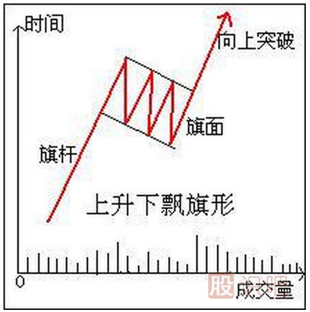 旗形形態(tài)又可分作上升下飄旗形和下降上飄旗形。