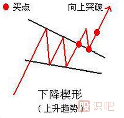 2. 雖然跌市中出現(xiàn)的上升或下降楔形,往下跌破所占的比例大,但如果相反是往上帶量升破,那么就可能開始一輪新的升勢了.