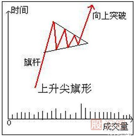 由邊收斂的旗形發(fā)育而成的,而三角旗形往往順著原有趨勢而不是相反。三角旗形交易量減少的比旗形更快(因此走勢得以快速收斂)。三角旗形中,當價格移出圖形時,往往會加速,而不是向旗形那樣會再次突然爆發(fā)。量度上三角旗形與旗形的情況相似。