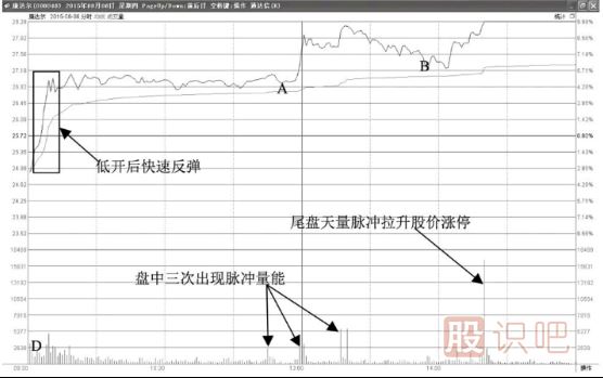 股票走勢技術分析教你分時圖拉升前的買點-三次脈沖放量拉升