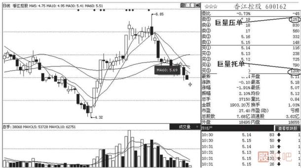如果巨量托單無法成功地托住股價,那股價就只能向下跌,此時的托單只能起到延緩下跌速度的作用,一筆托單托不住股價的時候,在下跌的途中往往還會有多筆托單出現(xiàn),只有當托單可以有效地頂住拋盤的壓力時,股價才可以停止下跌轉為上漲。
