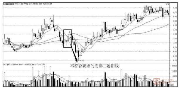 圖1-2不符合要求的底部三連陽線