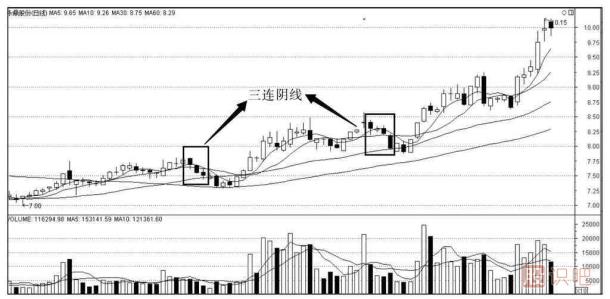 3.三連陰線的特殊形態(tài)