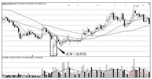2.底部三連陽線的應(yīng)用