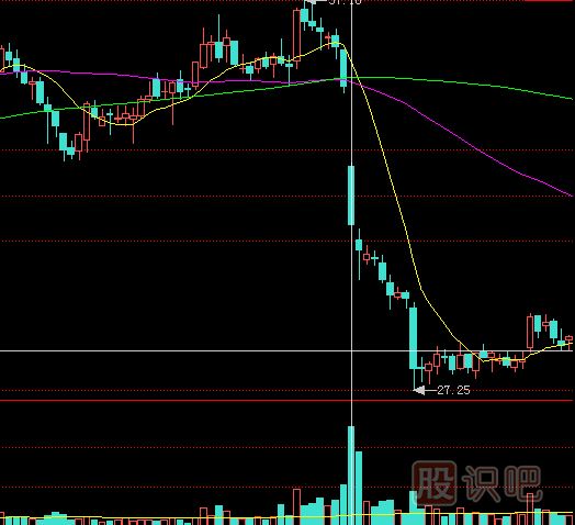 投資實(shí)例四:上實(shí)醫藥(600607)出現了“巨量陰線(xiàn)”后,其后股價(jià)大幅下挫(見(jiàn)圖)。