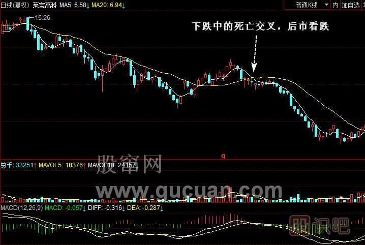 (3)下跌趨勢(shì)中均線死亡交叉,后市看跌,擇機(jī)離場(chǎng)。