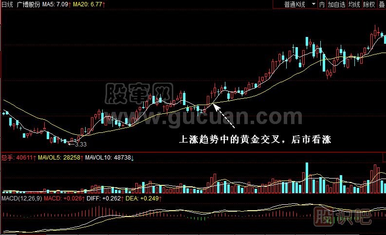 (2)上漲趨勢中均線黃金交叉,后市看漲,擇機入場。