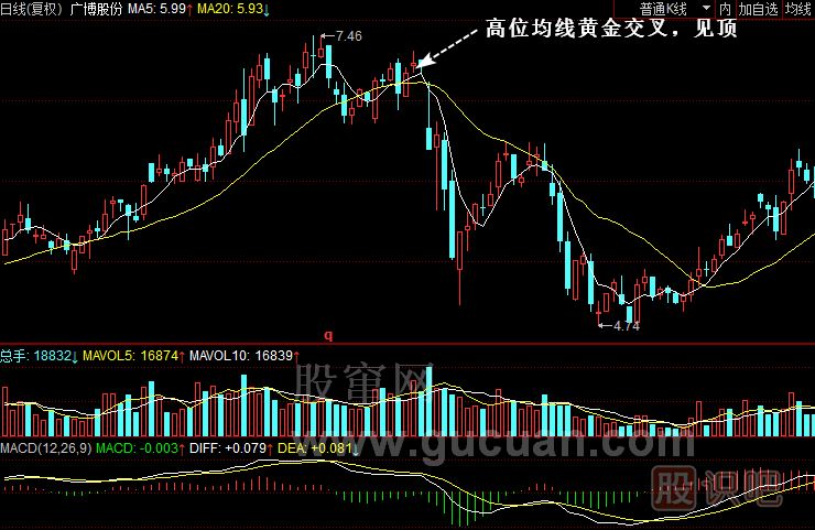 (4)高位均線黃金交叉,警惕見頂,擇機離場。