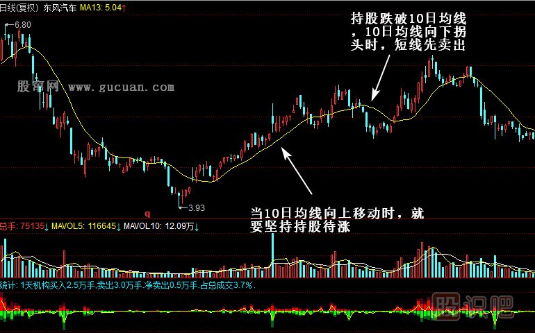 (2)當上升趨勢形成后,在股價(jià)回落卻不跌破5日均線(xiàn)時(shí),如果股價(jià)再次啟動(dòng)可適量買(mǎi)入。一般來(lái)說(shuō),長(cháng)莊股或是慢牛股在上升途中,往往不會(huì )有效跌破5日均線(xiàn)或10日均線(xiàn)。投資者手中如持有這類(lèi)個(gè)股,只要股價(jià)不破5日均線(xiàn)或10日均線(xiàn),就可結合大盤(pán)走勢、結合個(gè)股基本面,繼續持股待漲。