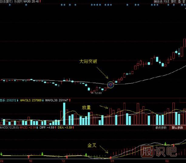 一般股價(jià)突破30日均線走平或走多,能否最終形成真正的突破,還需要看突破的時(shí)候,MACD能否在0軸附近同步金叉,或者同步騰空而起。