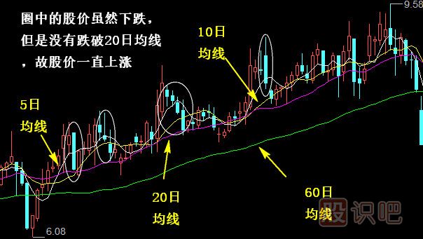 2.20日均線的趨勢(shì)研判仍為上升代表中短期趨勢(shì)向上,下行則表示趨勢(shì)向下,所以在使用20日均線來分析走勢(shì)時(shí),還可以用其來判斷市場(chǎng)的支撐或壓力的位置,但同時(shí)一定要關(guān)注20日均線作為支撐或壓力的有效性,否則將導(dǎo)致錯(cuò)誤性止損。
