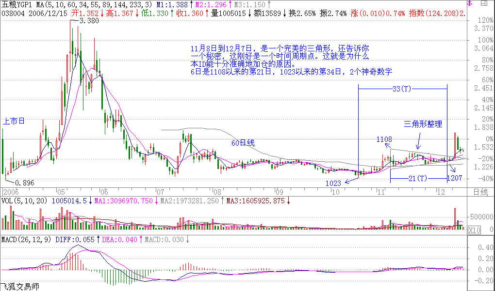 三角形的判別不看均線(xiàn),直接看圖形。11月8日到12月7日,是一個(gè)完美的三角形,還告訴你一個(gè)秘密,這剛好是一個(gè)時(shí)間周期點(diǎn)。這就是為什么本ID能十分準確地加倉的原因。幾個(gè)因數都結合在一切了。