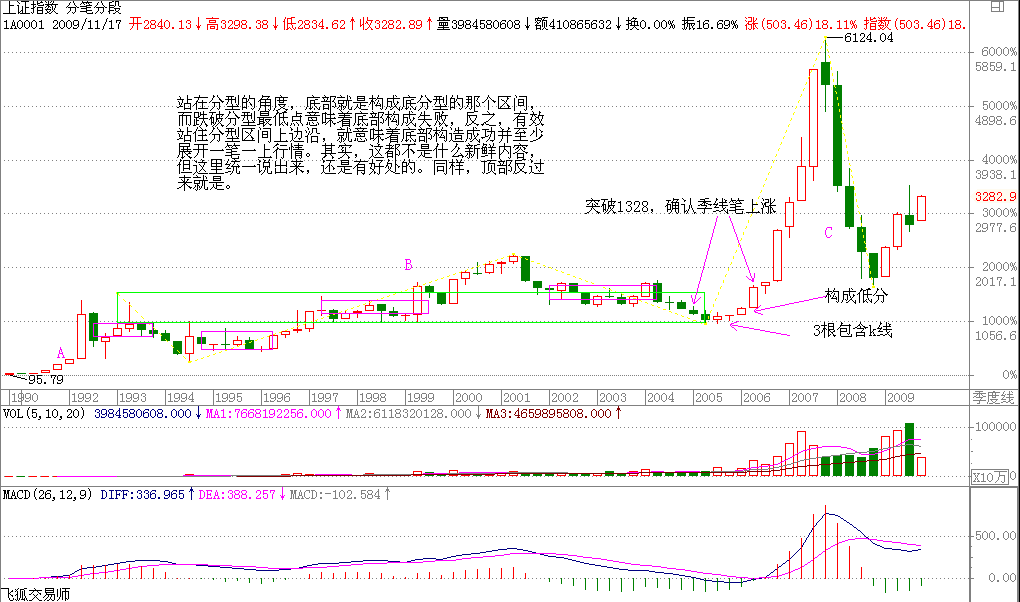 即2006年5月12日《G股是G點(diǎn),大牛不用套纏論中樞公式給您議G股是G點(diǎn)大牛不用套!》纏股市開篇第一課之后,歷時(shí)半年纏于2006-06-07 18:08:15為什么開始寫教你炒股票1:《不會(huì)贏錢的經(jīng)濟(jì)人,只是廢人!》?請(qǐng)看纏的第十課后我的配圖就一切都明白了。整個(gè)108課,纏帶領(lǐng)著大家經(jīng)歷了一個(gè)完整的上漲啟動(dòng)和下跌的結(jié)束,她在08年8月教你炒股票108:何謂底部?從月線看中期走勢演化(2008-08-29 09:15:01)一文中明確教大家在此處的分型的判斷中如何確立底部分型到2008年10月底確立后。課文也隨著她的2008-10-10 09:24:36《無話可說》結(jié)束了全部課程。