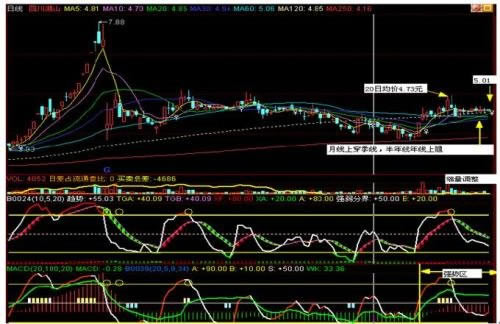 or (cross(sk,sd) and sk《=0.05 and (v/ma(v,5)》2 or c/ref(c,1)》0.035)),o,c,10,1),linethick3,colorred;